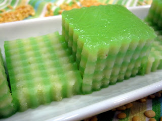 Posting had been a chore the last few weeks as i was not able to copy and paste. Only this morning did my friend Ted solved my problem. What a relieve for me, i could not be happier and it was double happiness as i managed to make this dessert which turned out better than i expected. I tasted this dessert when i was in Paris in 2000 and have been thinking about it since. This is a vietnamese dessert and another name for this dessert is called bánh da heo(literally "pig skin cake"). There is a 'kuih' in Malaysia which is very identical and it is called Kuih Lapis